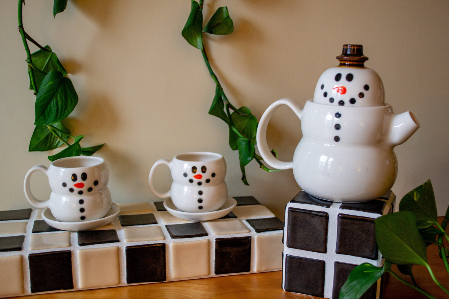 Porcelain Snowman Teapot and Cups Set - 6 pcs