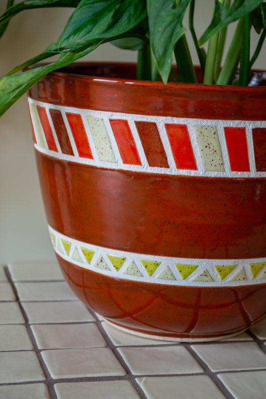 Tiled Stoneware Planter with Drip Plate | 8.5 in. Diameter | Rust | Tile Collection