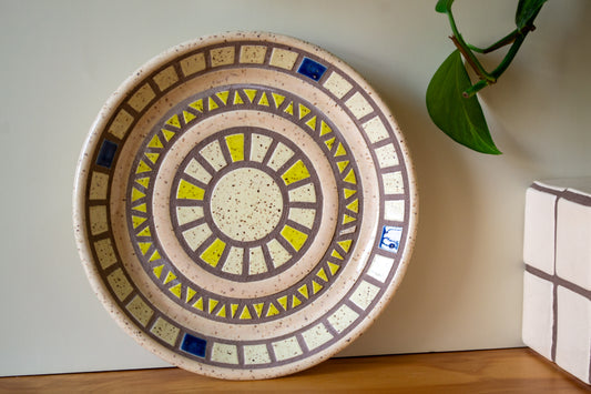 Tiled Stoneware Planter with Drip Plate | 9 in. Diameter | Cream/Blue | Tile Collection