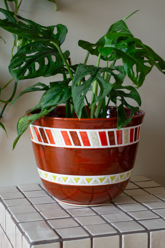Tiled Stoneware Planter with Drip Plate | 8.5 in. Diameter | Rust | Tile Collection